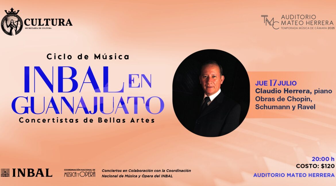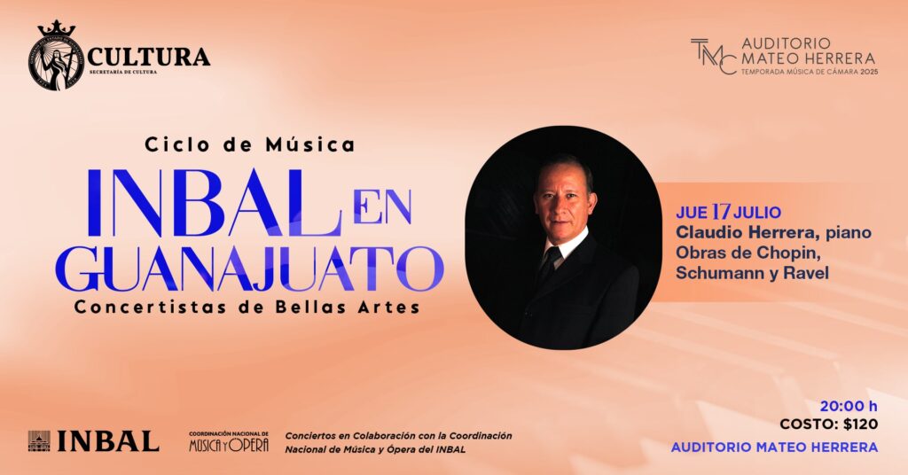 “Desde la Secretaría de Cultura de Guanajuato -expresó Lizeth Galván Cortés- seguimos fortaleciendo la colaboración con el INBAL para que el arte llegue a más personas. La presentación del maestro Claudio Herrera, un pianista con una trayectoria internacional ejemplar, es una muestra de nuestro compromiso por ofrecer en el estado propuestas artísticas de gran calidad, accesibles para todas y todos.”