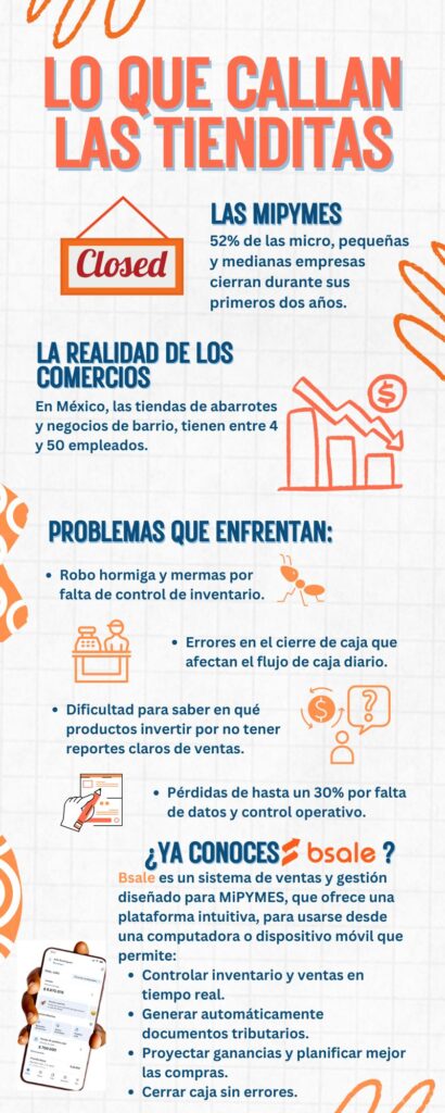 Bsale es un sistema de ventas y gestión diseñado especialmente para negocios con entre 1 y 20 sucursales. La mayoría de sus clientes en México son comercios de abarrotes y “tienditas”, muchos de ellos con entre 4 y 50 empleados. Actualmente, cuenta con clientes en CDMX, Guadalajara, Querétaro y Baja California, ayudándoles a enfrentar la inflación, reducir pérdidas y crecer de manera sostenible.