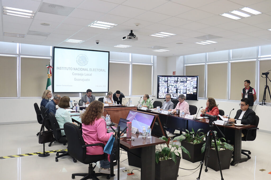Guanajuato, Gto., a 2 de junio de 2025.- En la reanudación de la sesión extraordinaria del Consejo Local, se informó que el 100 por ciento de los paquetes electorales de las 3 mil 929 casillas llegaron a las sedes de los Consejos Distritales e ingresaron a las bodegas electorales, lo anterior como parte de la cadena de custodia del proceso electoral.