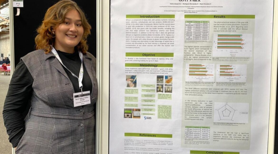 Cabe resaltar que ambas estudiantes, junto a otras y otros compañeros de la UG, tuvieron la oportunidad de presentar su investigación en la 11ª Conferencia Internacional sobre Suero de Leche, celebrada en septiembre de 2024 en Dublín, Irlanda. Con este tipo de proyectos, se buscan formas de fácil uso, mismas que puedan ser opciones para que productores de queso creen otros productos: