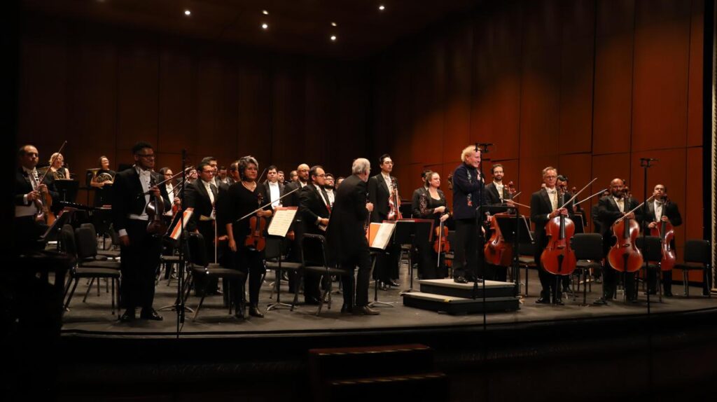 Guanajuato, Gto., a 09 de mayo de 2025.- La Orquesta Sinfónica de la Universidad de Guanajuato (OSUG) conmemoró el Día internacional de las aves migratorias en el Teatro Juárez, esto con la guía director huésped Enrique Arturo Diemecke, consagrado músico mexicano cuya historia de vida está ligada a la agrupación y la ciudad de Guanajuato desde la infancia.