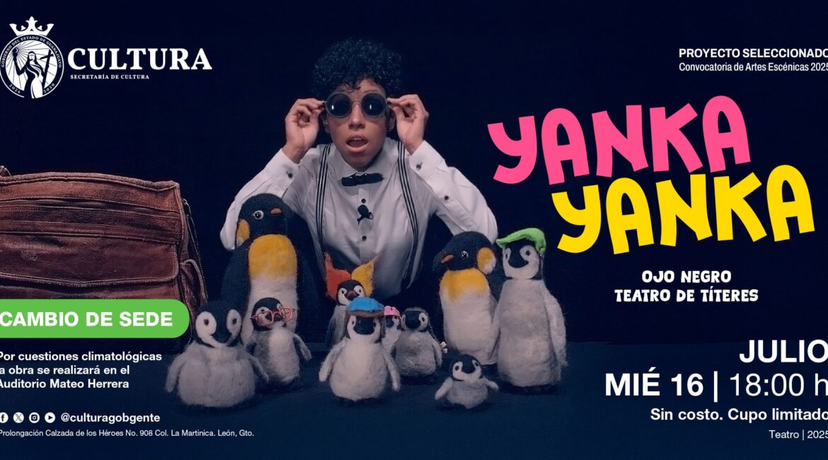 León, Guanajuato, 12 de julio de 2025.- La Secretaría de Cultura, invita al público infantil y familiar a disfrutar de “Yanka Yanka”, una propuesta escénica de Ojo Negro Teatro de Títeres, que se presentará en el Auditorio Mateo Herrera.